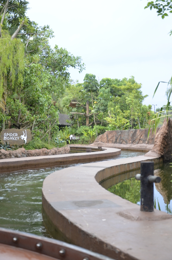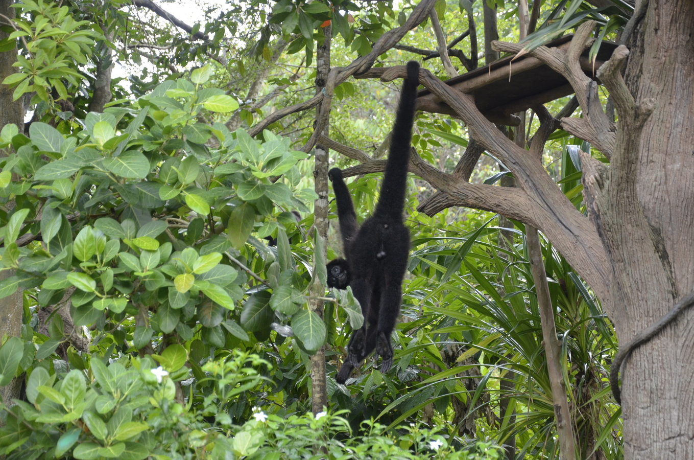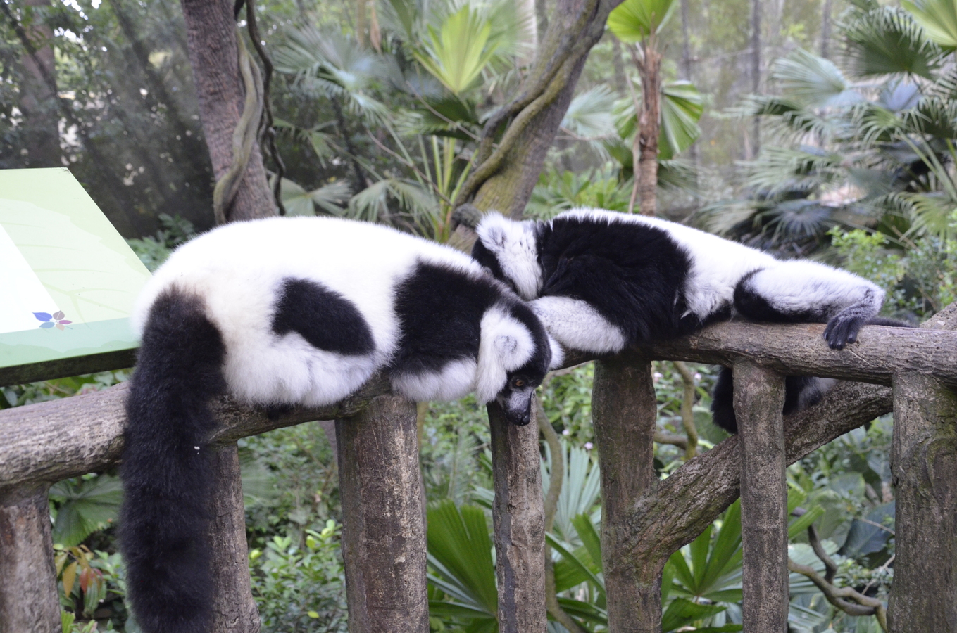 Szukając w Internecie informacji co zobaczyć w Singapurze na każdej stronie pojawiało się Zoo. Ogród podzielony jest na trzy części - River Safari, Night Safari i część główną. Wstęp do jednego parku kosztuje 32 lub 35 dolarów, więc sporo, ale można też dostać łączony bilet na dwa, trzy lub cztery parki (jeszcze jeden ogród z ptakami znajduje się w innej części Singapuru, dojazd tam zajmuje około godziny). Nasz wybór padł na bilet łączony do wszystkich parków, chociaż początkowo chcieliśmy iść tylko do dwóch. Przez spore opóźnienia przy przekraczaniu granicy byliśmy w Zoo o 16.00, a ogród jest zamykany o 18.00. Dlatego zwiedzanie głównej części zostawiliśmy na inny dzień i zaczęliśmy od River Safari. Wracając do opinii z Internetu to właśnie ta część parku zbiera najniższe oceny. Według większości ludzi (prawie każda opinia na TripAdvisor!) RS warto odwiedzić tylko ze względu na… pandy. Według mnie to spora przesada, bo reszta jest bardzo ciekawa. Są tam ryby, małpki, krokodyle, manaty, ptaki, wspaniała flora i przepięknie przygotowane ścieżki. A jedyna panda siedziała w ogromnym klimatyzowanym pomieszczeniu i chowała się w pobliżu swojego miejsca do spania. Szczerze mówiąc było to dość rozczarowujące. Elementem wyróżniającym singapurskie Zoo od tych w Polsce są klatki ze zwierzętami, do których możemy wejść! Zwierząt oczywiście nie powinno się dotykać, ale malutkie małpki chętnie przychodzą do ludzi, siedzą na barierkach i biegają po lianach nad głowami.