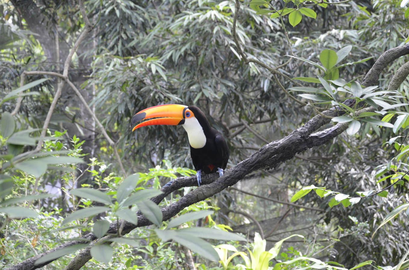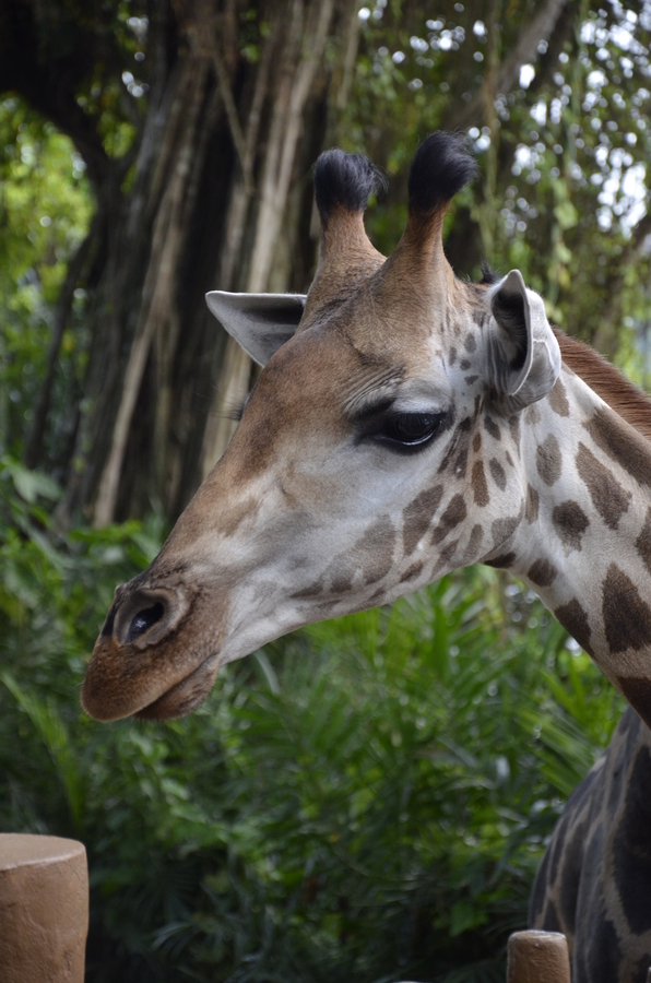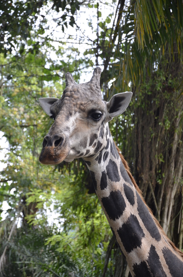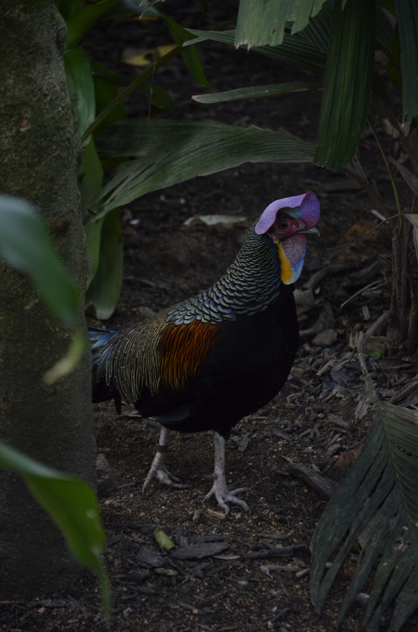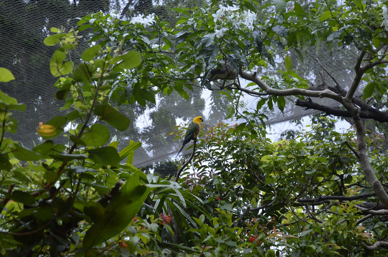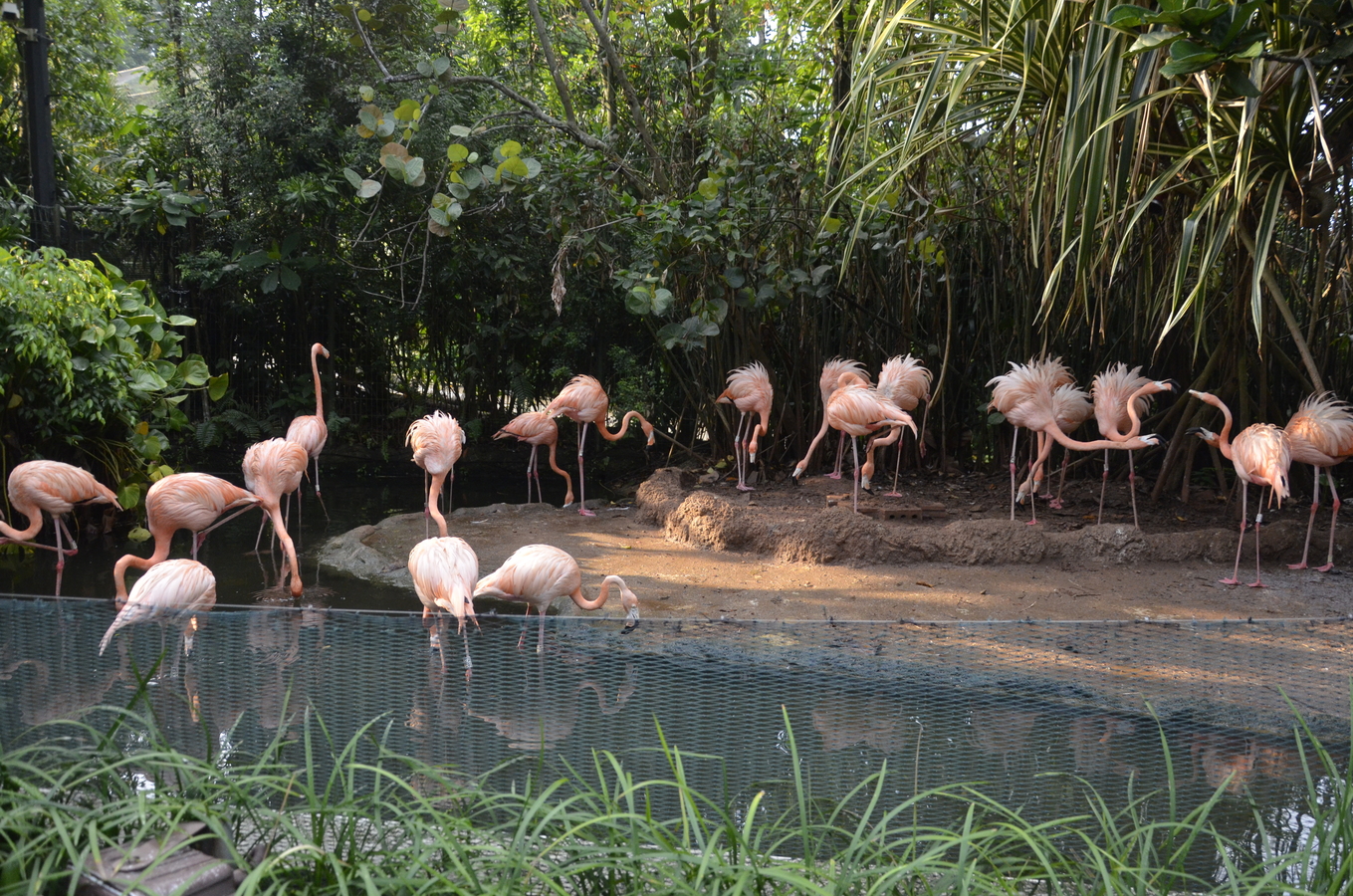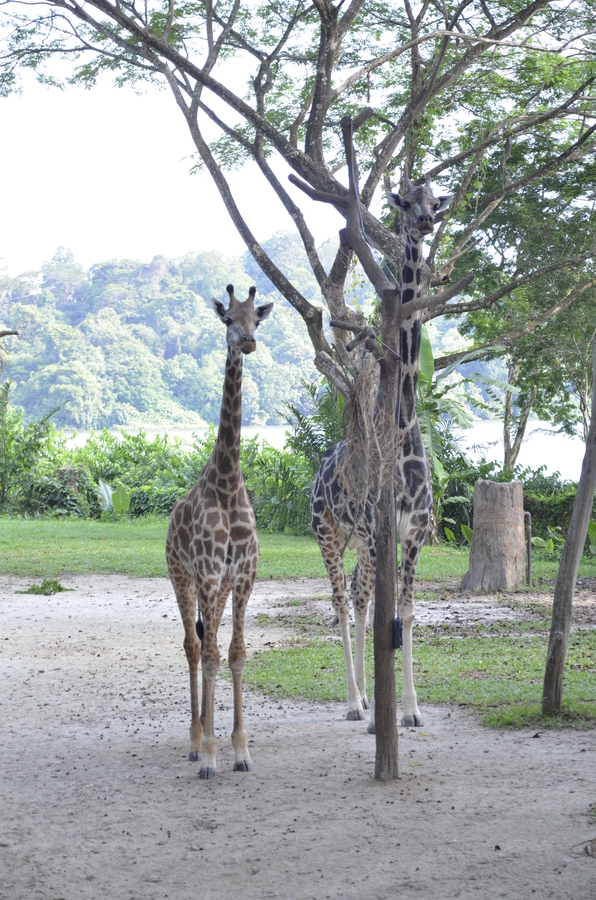 Na ostatni dzień pobytu zostawiliśmy Singapurskie Zoo. Do ogrodu dotarliśmy dopiero na 15, ze względu na brak odpowiednich autobusów na granicy. Czasu nie było za wiele, ale i tak dzień był pełen wrażeń. Podobnie jak pozostałe parki, Zoo jest przyjaźnie urządzone i pozwala zbliżyć się do zwierząt w niespotykany gdzie indziej sposób. Większość klatek z drapieżnikami posiada sekcje z szybą, tak by móc w pełni podziwiać zwierzęta. Bardzo spodobał nam się wybieg dla żyraf. Posiada platformę na której można stanąć oko w oko z żyrafą i to dosłownie na wyciągnięcie ręki. Na platformę normalnie wchodzi się za opłatą w porze karmienia, ale była już zamknięta więc wkradliśmy się tam nielegalnie. Miasto zakazów obudziło w nas potrzebę rebelii. Ciekawostką jest również kilka gatunków małp, które żyją wolno na terenie Zoo. Można dostrzec je w koronach drzew. Podobnie jak w poprzednich ogrodach najciekawszą atrakcją była otwarta, wielka klatka ze zwierzętami. Były w niej motyle, ptaki, nietoperze, małpki i małe gryzonie. Nasze serca skradł po raz kolejny nietoperz, najbardziej kolorowy kogut na świecie z fioletowo-seledynowym grzebieniem i tukan, który przyleciał specjalnie dla nas i grzecznie pozował do zdjęcia.