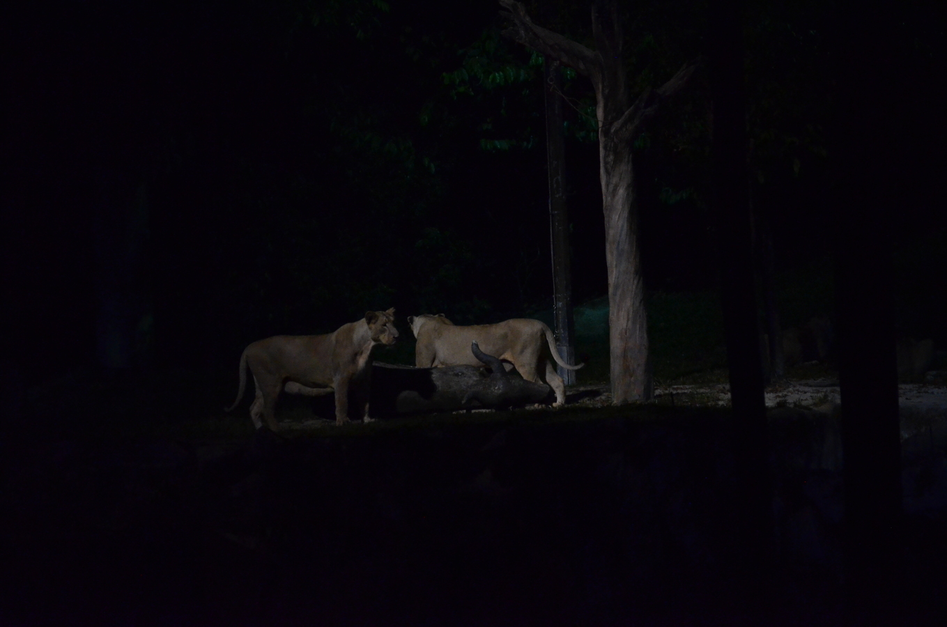 Po krótkiej przerwie na kolację udaliśmy się do Night Safari i od razu zdradzę, że to mój ulubiony punkt zwiedzania Singapuru. Nie spodziewałam się, że kawałek Zoo w nocy może być tak ciekawy. W ciemności zupełnie inaczej patrzy się na otaczającą naturę, a ścieżki są bardzo gęsto zarośnięte tropikalnymi roślinami. Nie raz jakiś mały zwierzak przebiegł nam drogę i nie raz tuż nad naszymi głowami przeleciał nietoperz. Do tego czuliśmy się jakbyśmy byli w tym parku sami! Rzesze ludzi czekały na przewóz kolejką, zupełnie jakby myśleli, że to jedyny sposób na zwiedzanie. Obserwowaliśmy stado sześciu lwic, słyszeliśmy wołającego je lwa. Poza tym widzieliśmy mnóstwo zwierząt nocnych, ale znowu moim ulubionym elementem wycieczki były klatki, do których można wejść. Tym razem z… wielkimi nietoperzami. Malaysian Night Fox ma prawie metrową rozpiętość skrzydeł, a tułów wielkości małego kota. Wygląda przerażająco i uroczo jednocześnie. Latające liski mijaliśmy w klatce na wyciągnięcie ręki i bardzo musiałam się powstrzymywać przed pogłaskaniem tych słodkich istot.